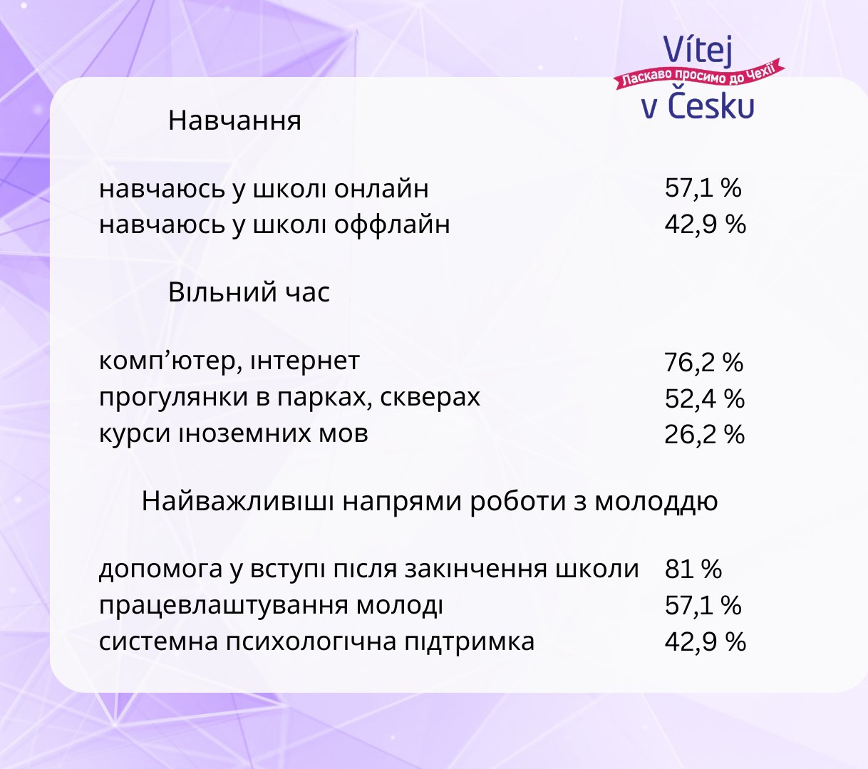 Мета: визначення потреб підлітків/ молоді та пріоритетних напрямків розвитку молодіжної сфери для українських підлітків в Чехії.